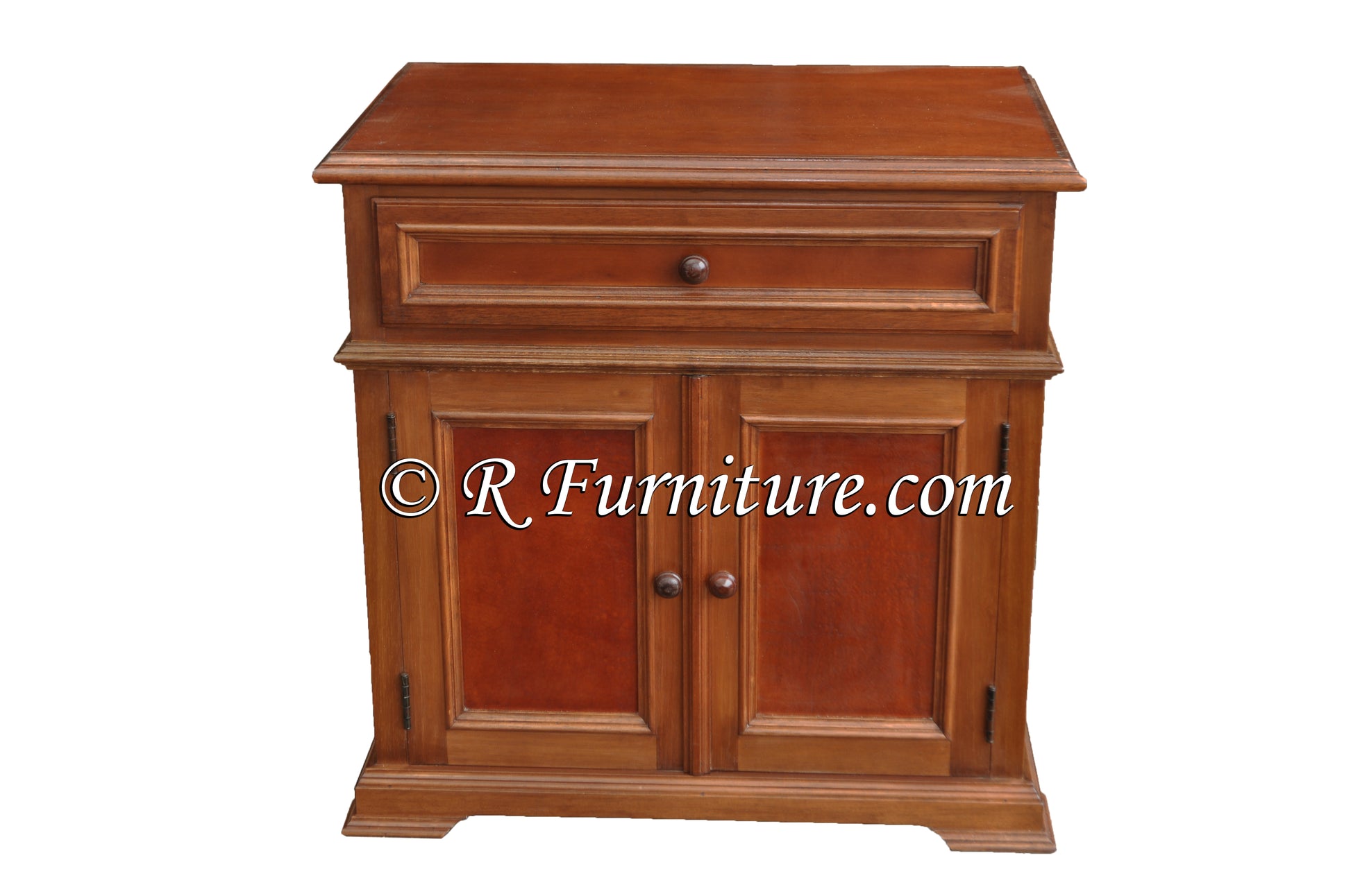 Santa Barbara night stand, Leather panel night stand, chestnut. 31"W x 20"D x 31"H. Available in custom sizes and finishes.